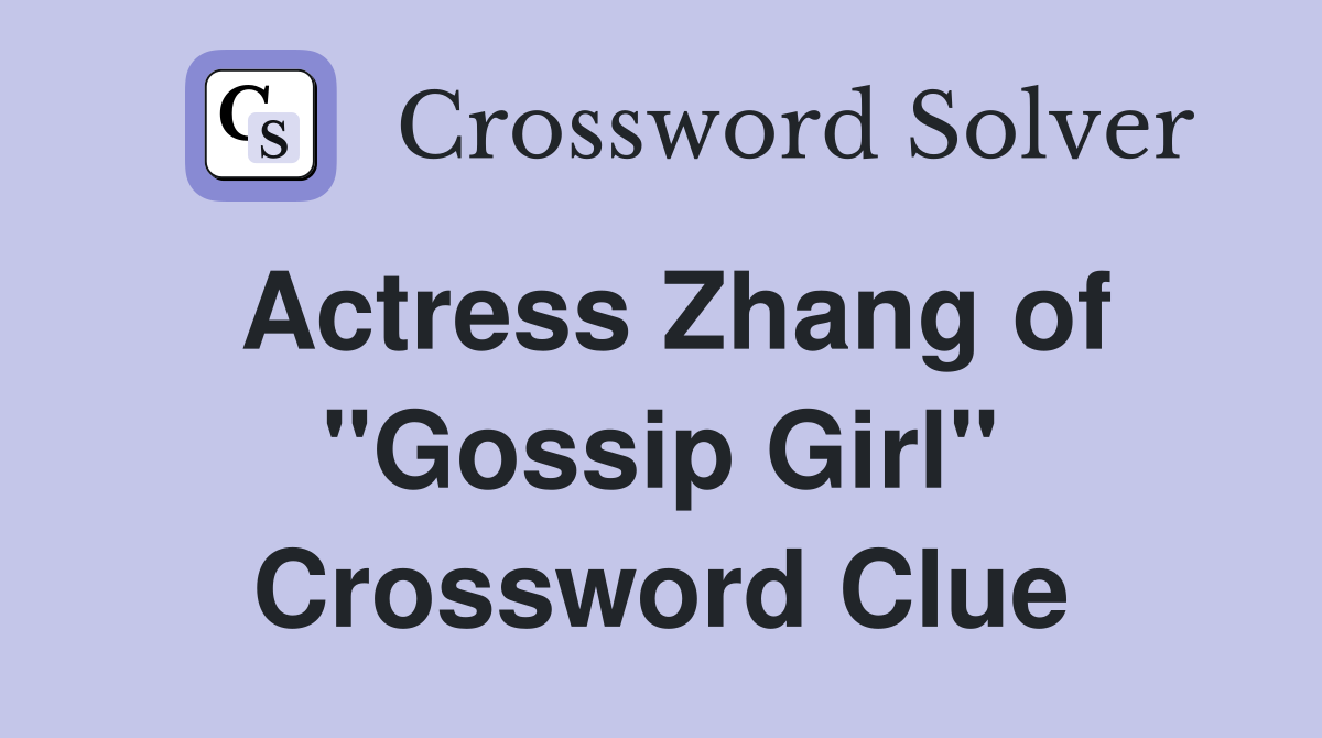 Actress Zhang of quot Gossip Girl quot Crossword Clue Answers Crossword Solver
