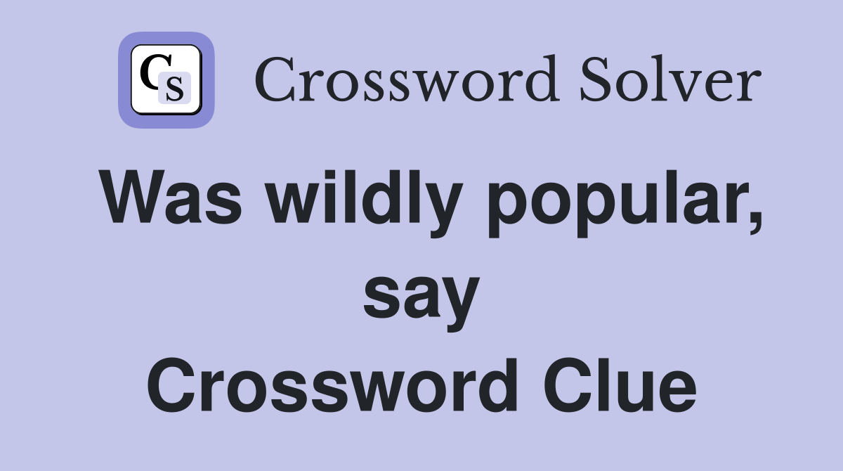 Was wildly popular say Crossword Clue Answers Crossword Solver