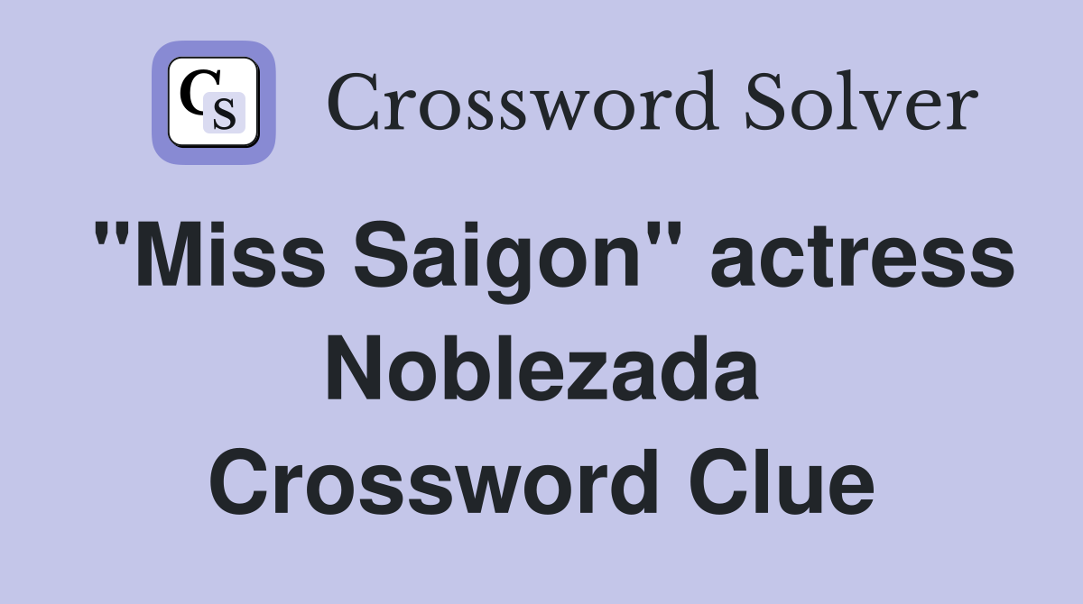 quot Miss Saigon quot actress Noblezada Crossword Clue Answers Crossword Solver