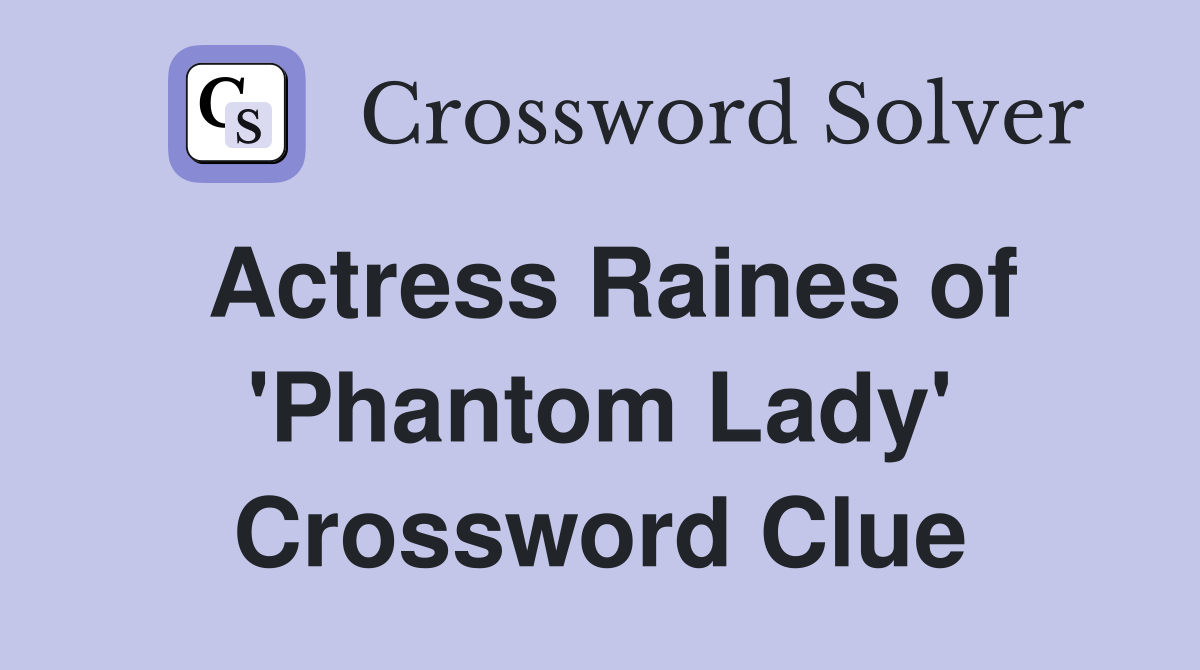 Actress Raines of #39 Phantom Lady #39 Crossword Clue Answers Crossword