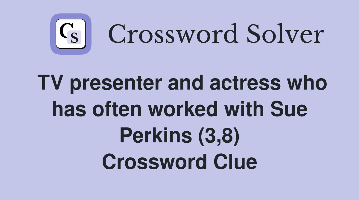 TV presenter and actress who has often worked with Sue Perkins (3 8