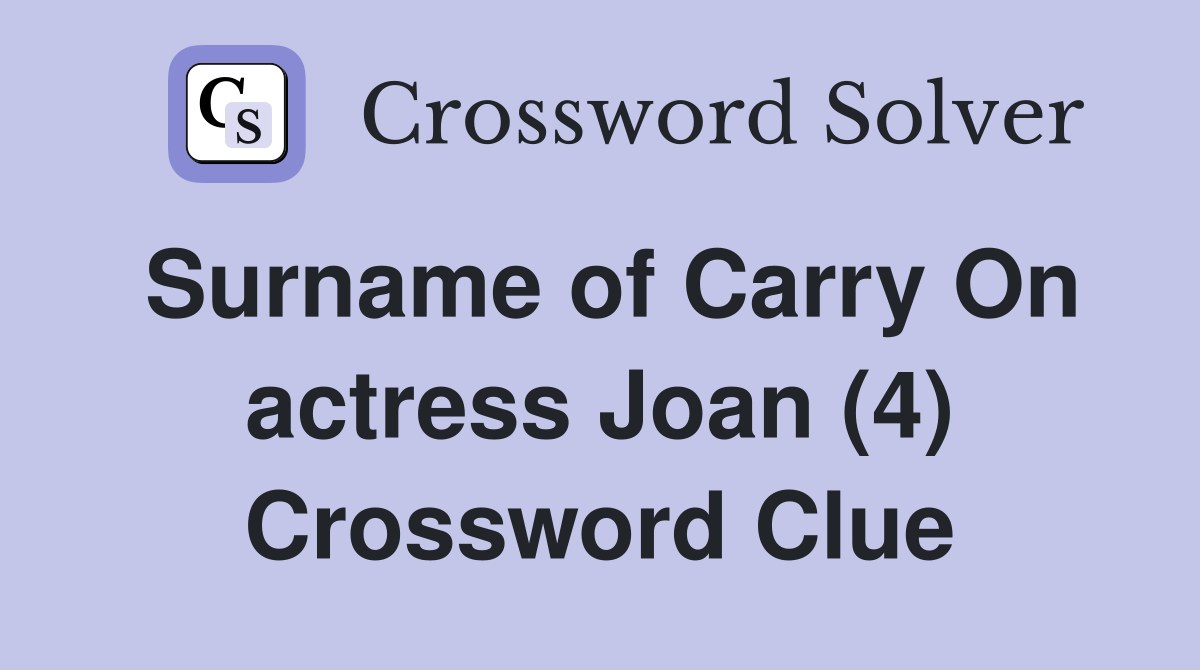 Surname of Carry On actress Joan (4) Crossword Clue Answers
