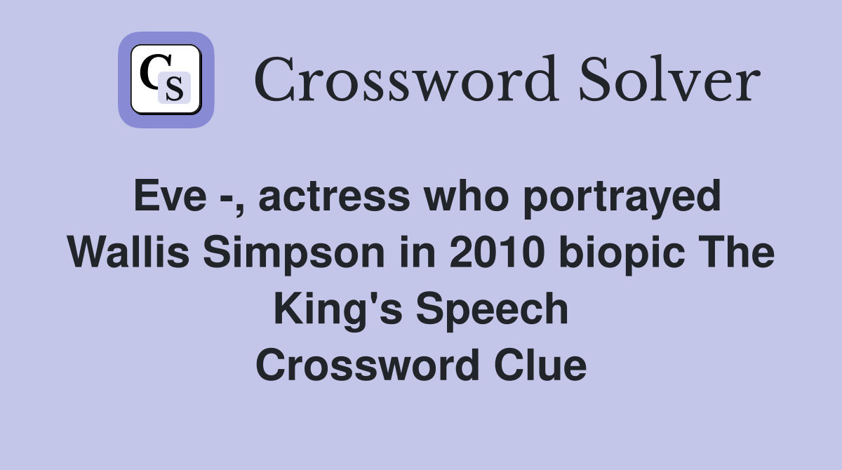 Eve actress who portrayed Wallis Simpson in 2010 biopic The King s
