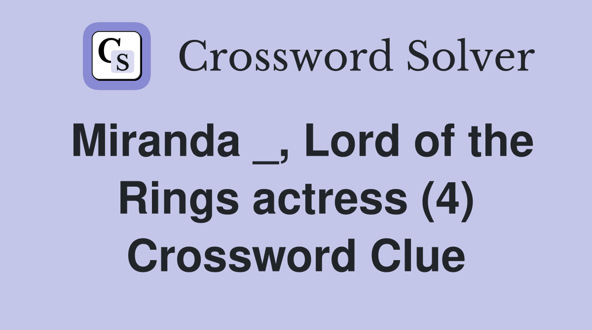 Miranda Lord of the Rings actress (4) Crossword Clue Answers