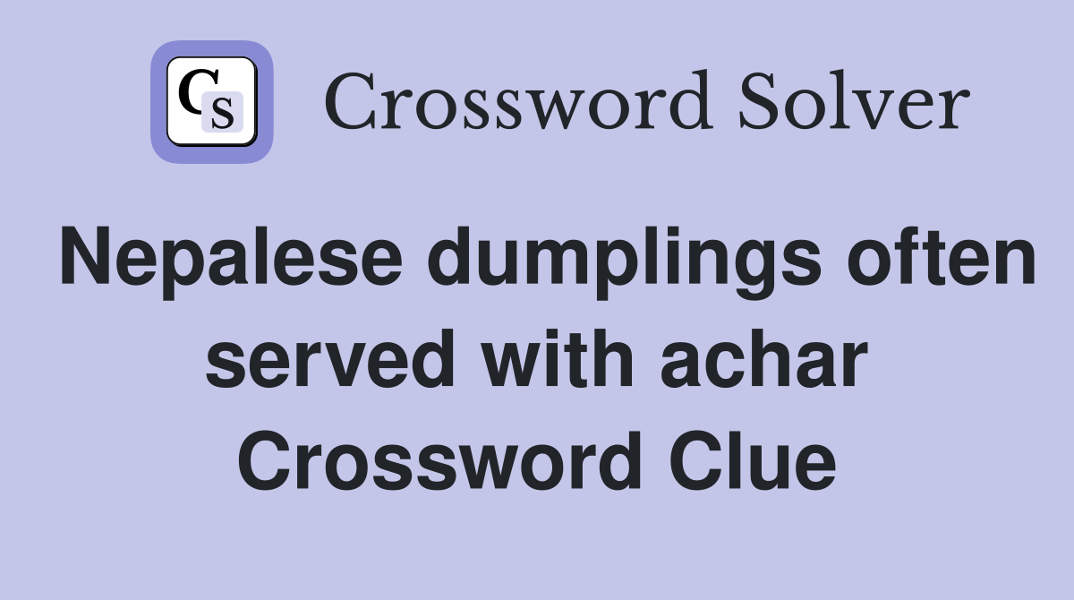 Nepalese dumplings often served with achar Crossword Clue Answers