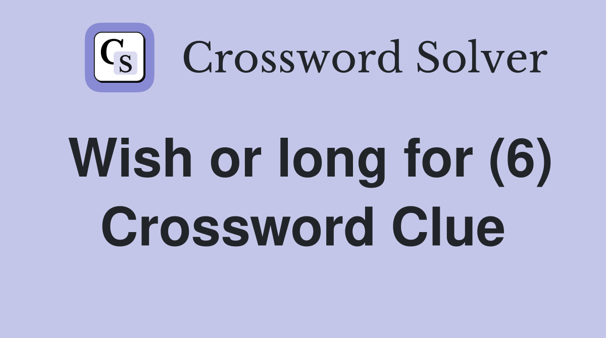 Wish or long for (6) Crossword Clue Answers Crossword Solver