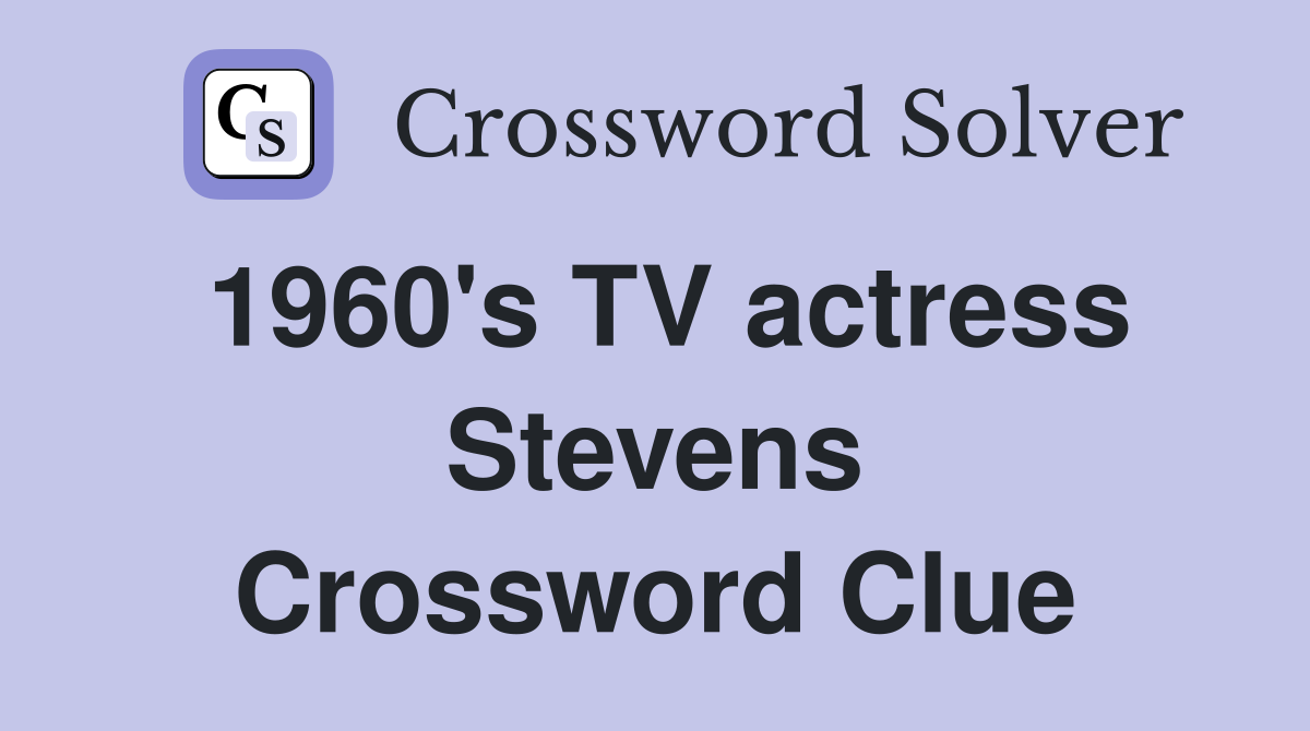 1960 #39 s TV actress Stevens Crossword Clue Answers Crossword Solver