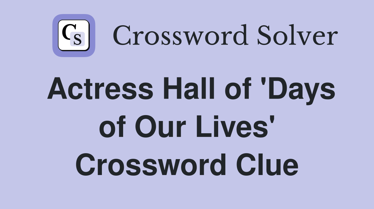 Actress Hall of #39 Days of Our Lives #39 Crossword Clue Answers