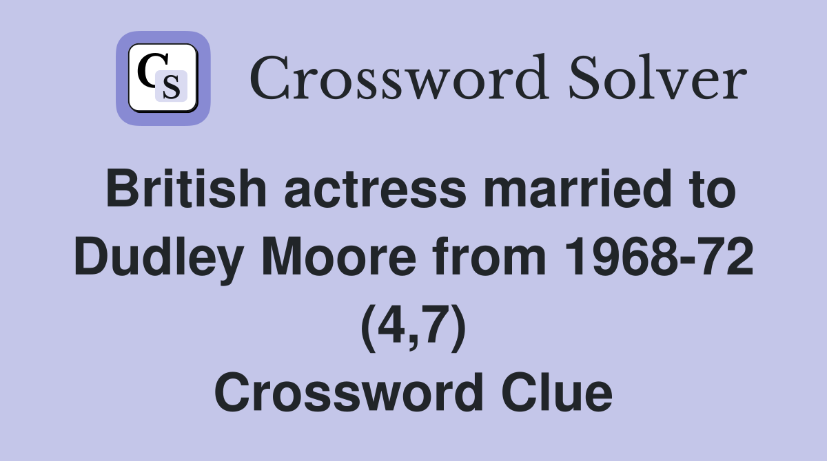 British actress married to Dudley Moore from 1968 72 (4 7) Crossword