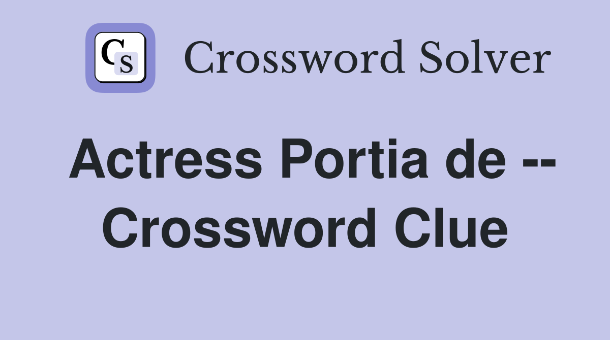 Actress Portia de Crossword Clue Answers Crossword Solver