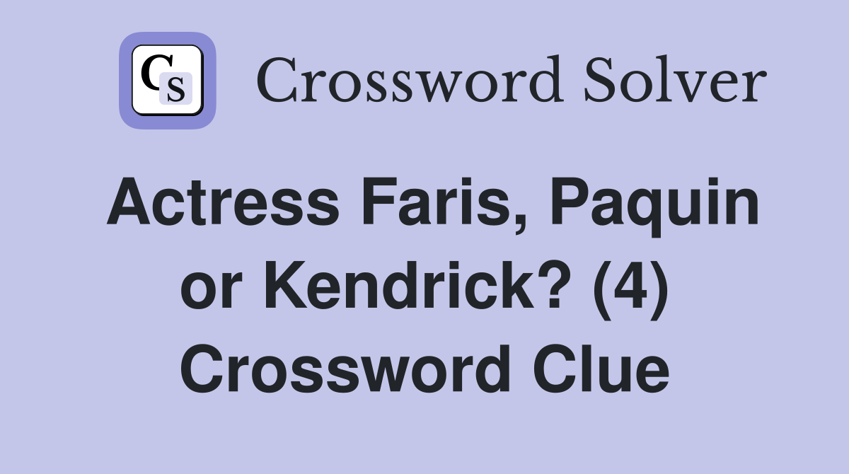 Actress Faris Paquin or Kendrick? (4) Crossword Clue Answers