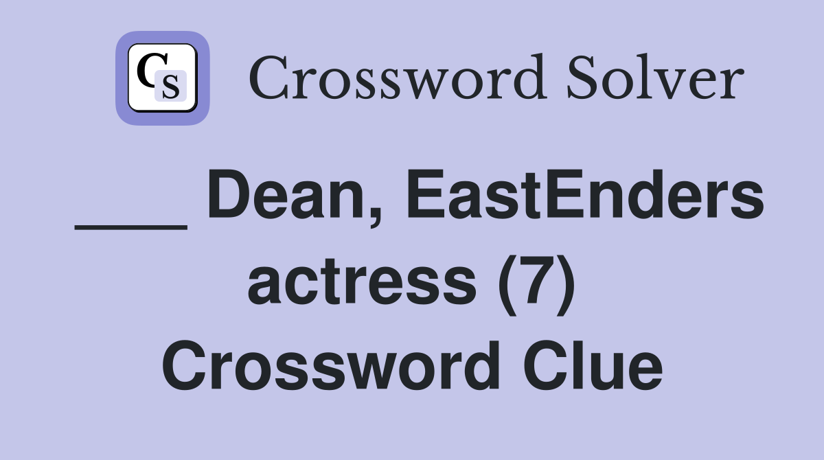 Dean EastEnders actress (7) Crossword Clue Answers Crossword Solver