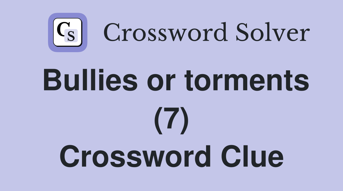 Bullies or torments (7) Crossword Clue Answers Crossword Solver
