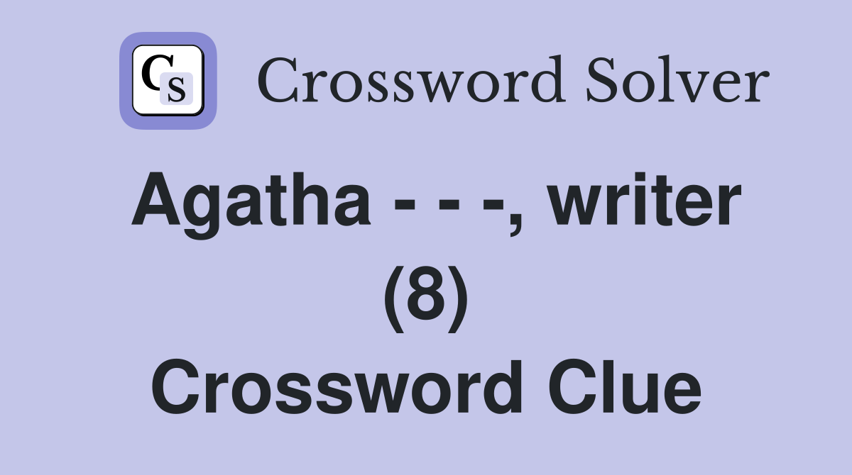 Agatha writer (8) Crossword Clue Answers Crossword Solver