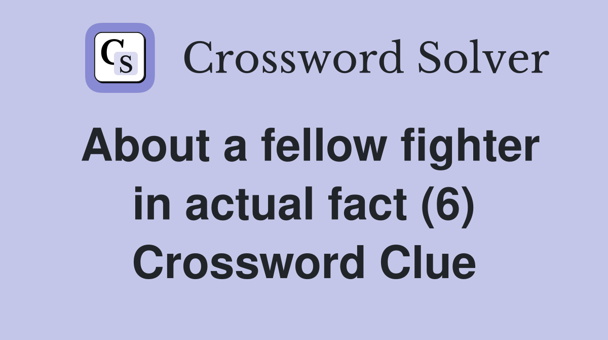 About a fellow fighter in actual fact (6) Crossword Clue Answers