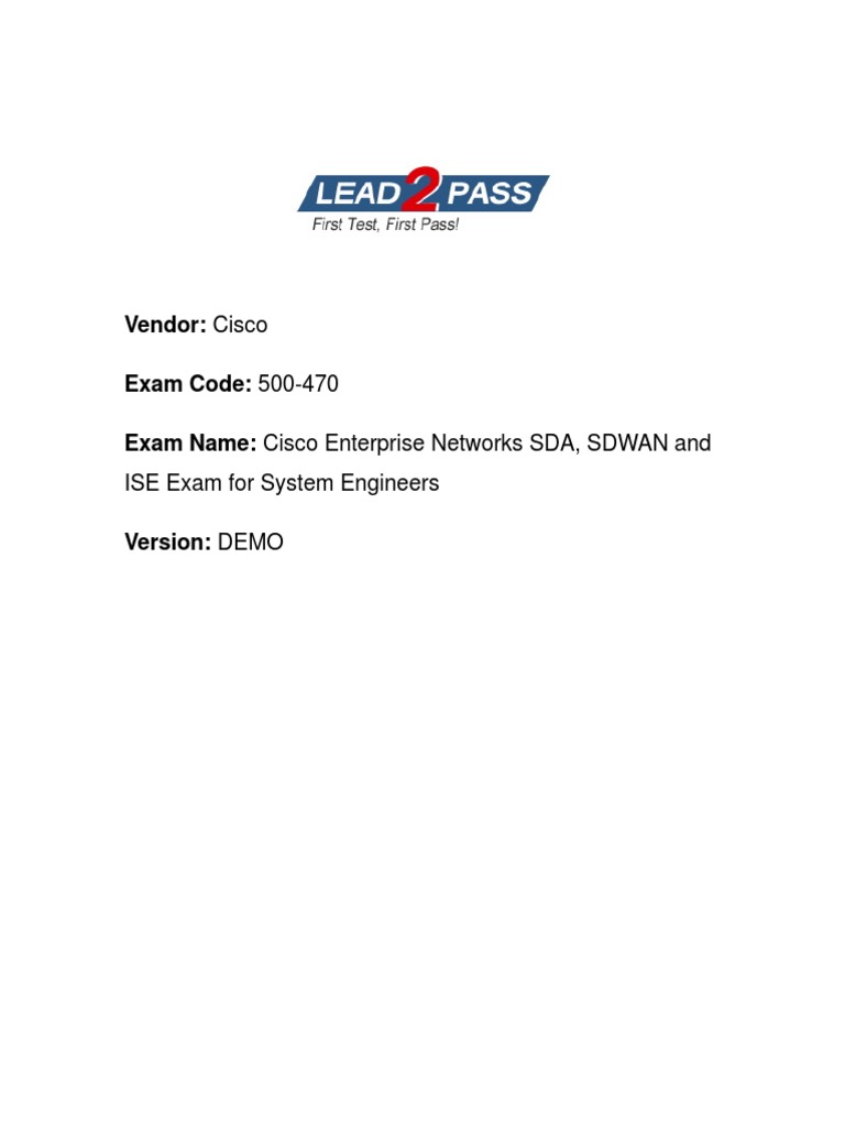 Vendor: Cisco Exam Code: 500 470 Exam Name: Cisco Enterprise Networks