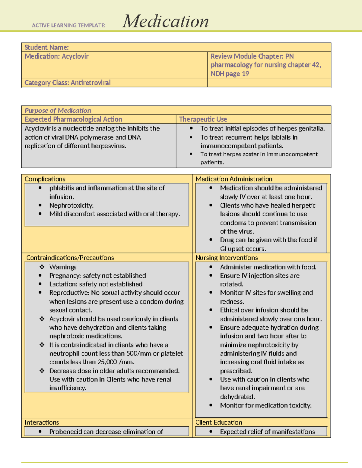 Acyclovir pdf Tuesday ACTIVE LEARNING TEMPLATE: Medication STUDENT