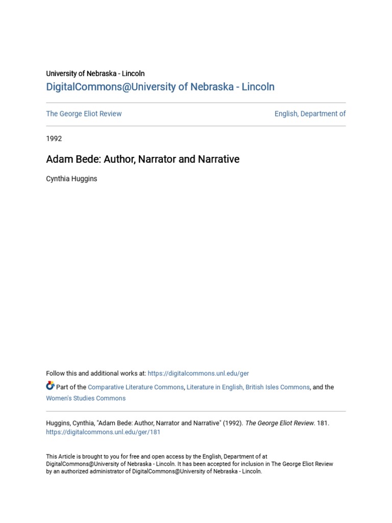 Adam Bede Author Narrator and Narrative PDF Narration George Eliot