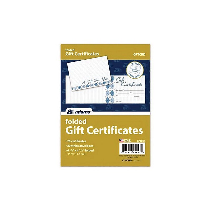 Adams Folded Gift Certificates 20/Pack (GFTCRD) image 1