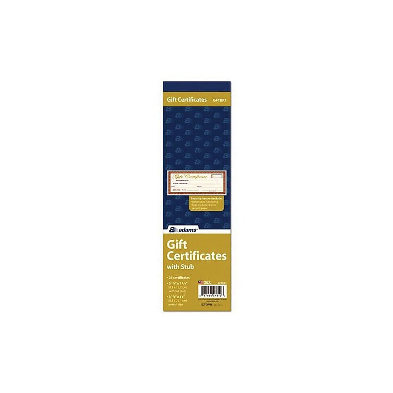 Adams Gift Certificate Book Security Watermark ABFGFTBK1 Shoplet com