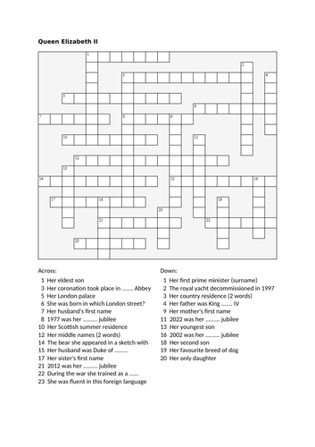 Queen Elizabeth II crossword puzzle Teaching Resources