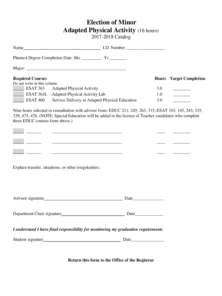 Utah Adapted Physical Education Endorsement Application Fill Out