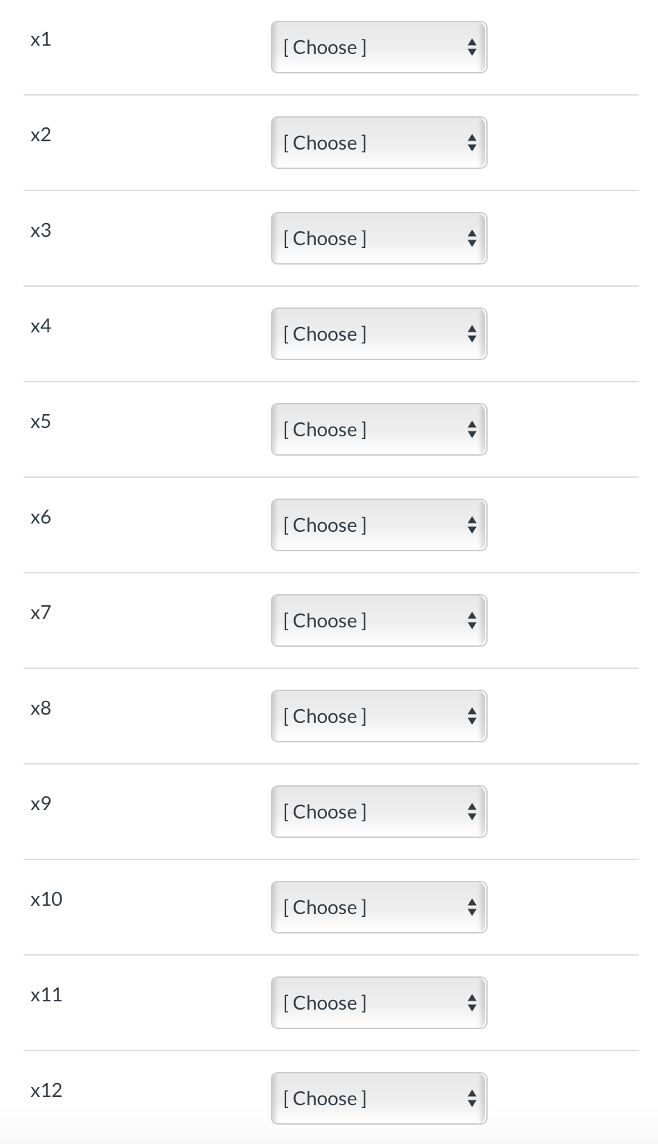 Solved Match each xi with the correct value so that the Chegg com