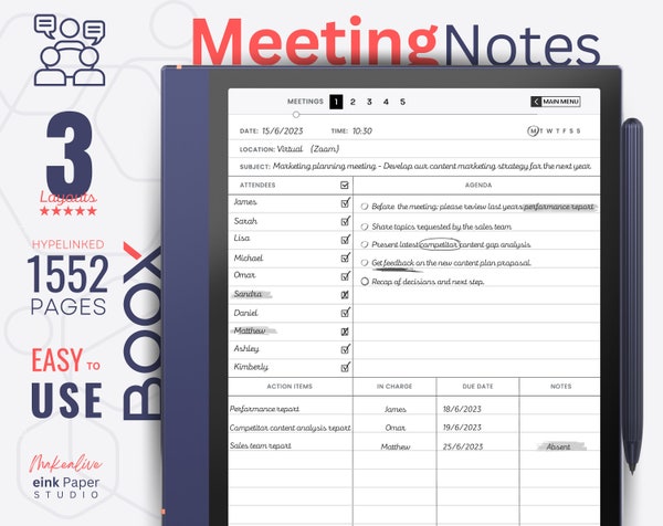 Remarkable meeting notes digital work organizer business planner