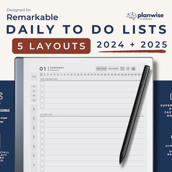 For ReMarkable 2 Daily Planner 2024 2025 TabletTemplates com