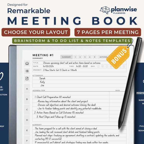 ReMarkable 2 Meeting Minutes Template Digital Download Etsy