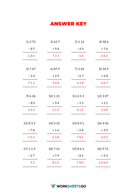 2 3 and 4 Digit Addition and Subtraction Worksheets with Worksheets