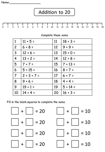 Addition and Subtraction to 20 Worksheets Made By Teachers