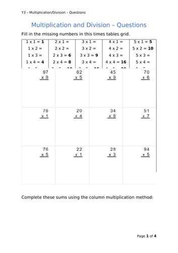 Y3 Maths Multiplication Division Teaching Resources