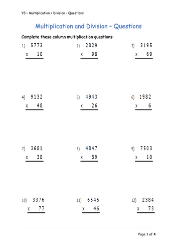 Y5 Maths Multiplication and Division Teaching Resources