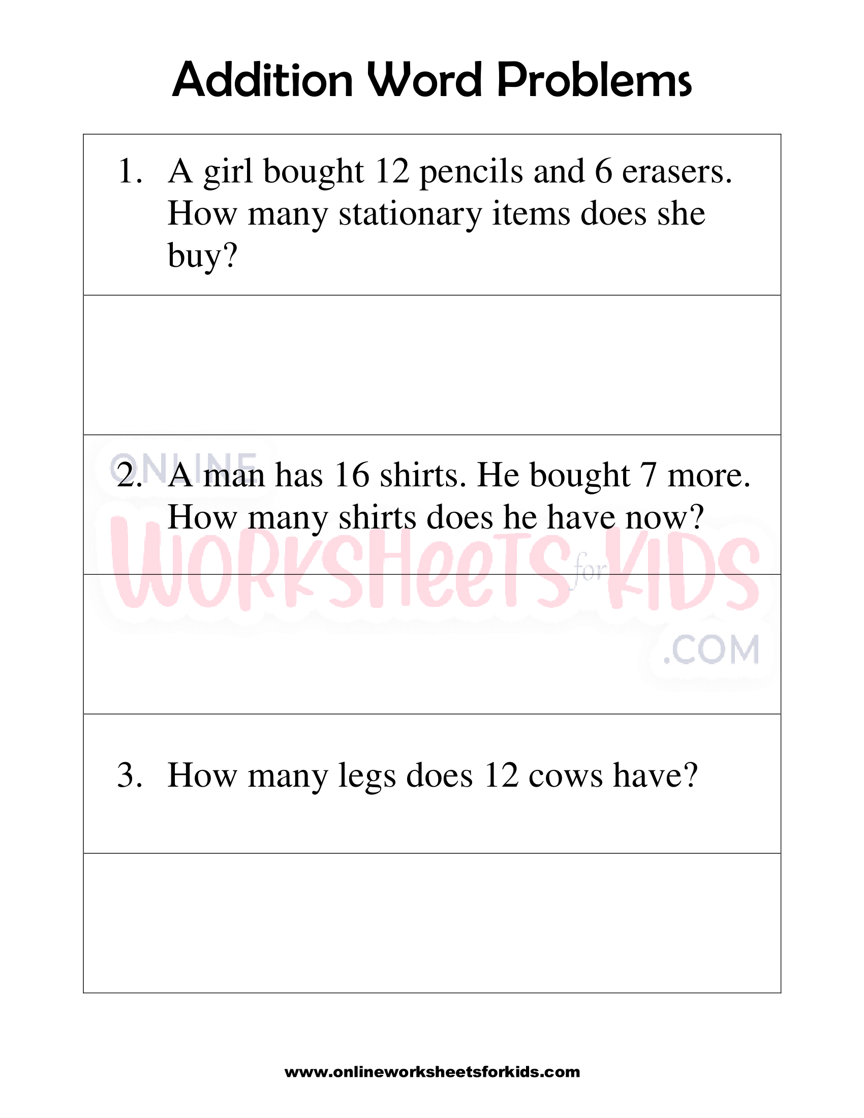 Here are some of the images for Addition Word Problems Worksheet that we found in our website database.