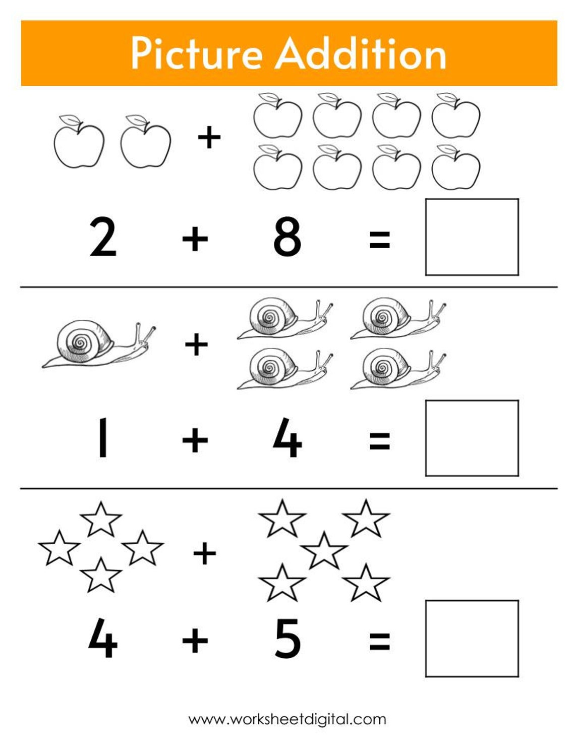 20 Printable Kindergarten Addition Worksheets Picture Addition and