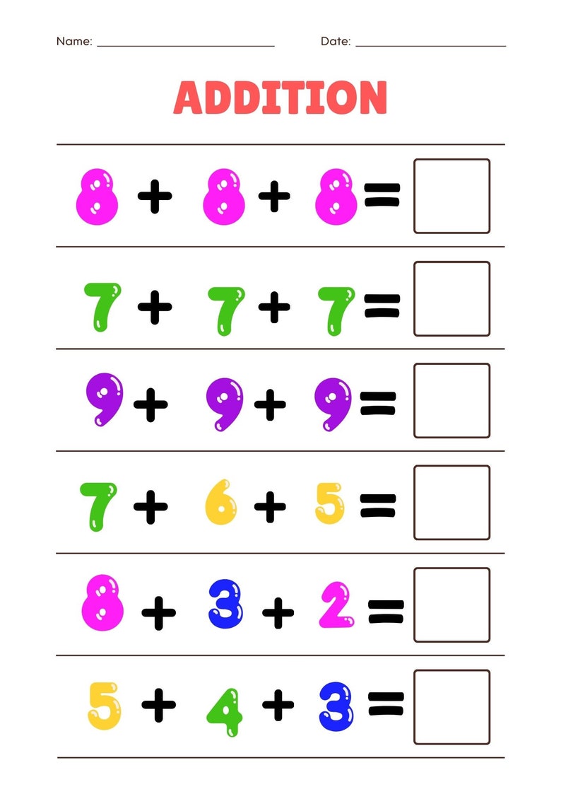 Preschool addition math worksheet template 3591730 Vector Art at Vecteezy