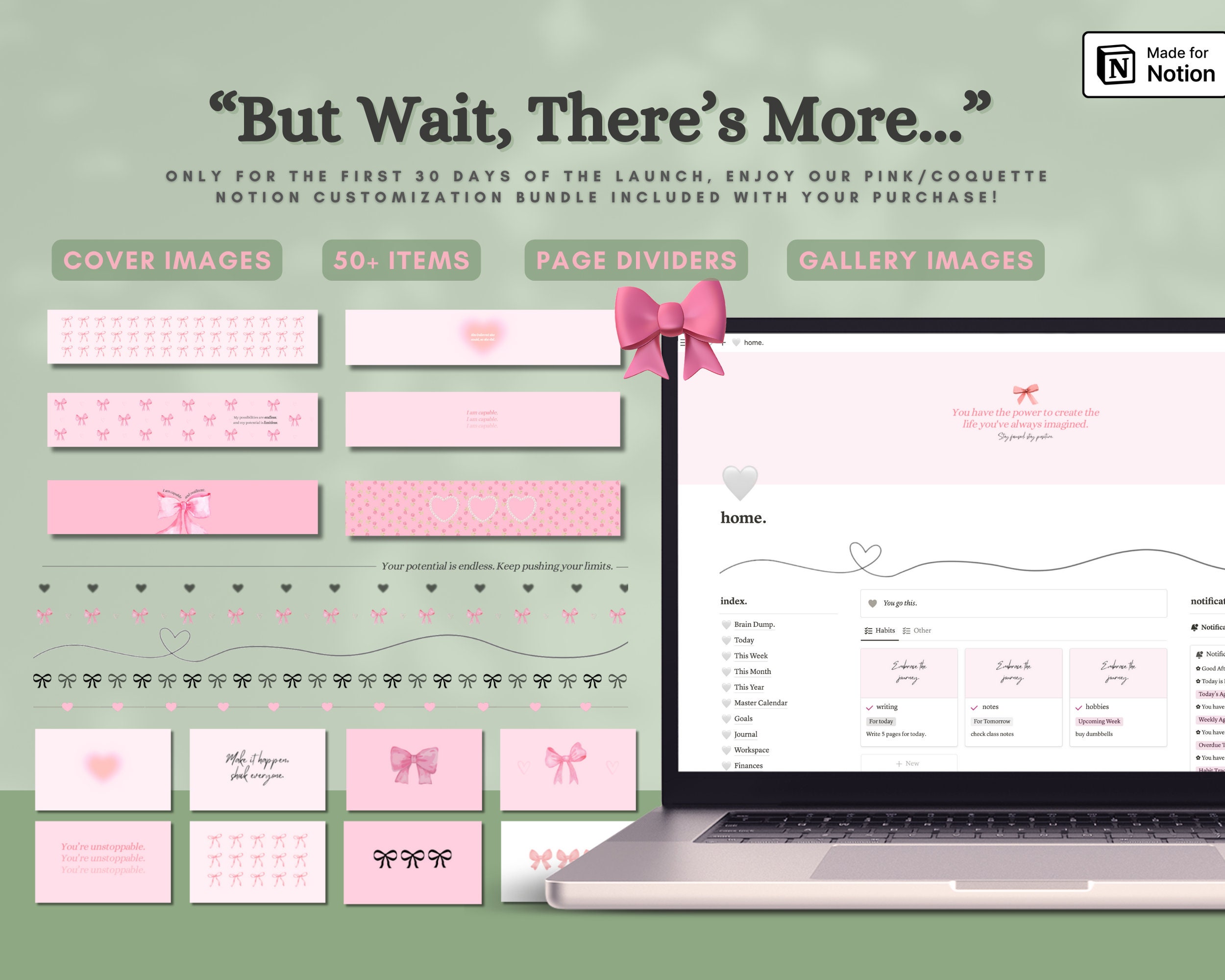 Pink Notion Template Life Planner 2024 All in One Notion Dashboard