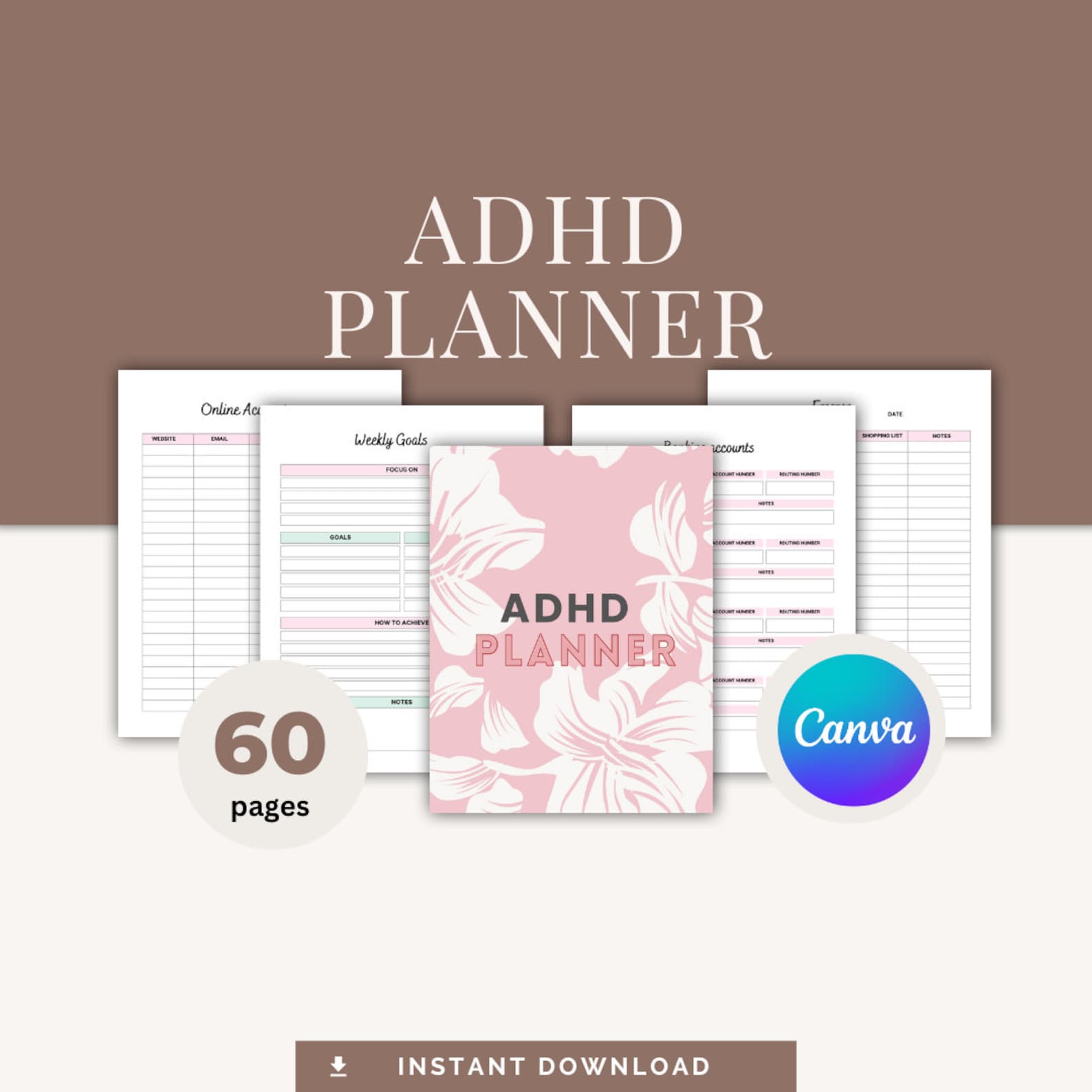 Editable ADHD Checklist Printable Planner Canva Template ADHD Digital