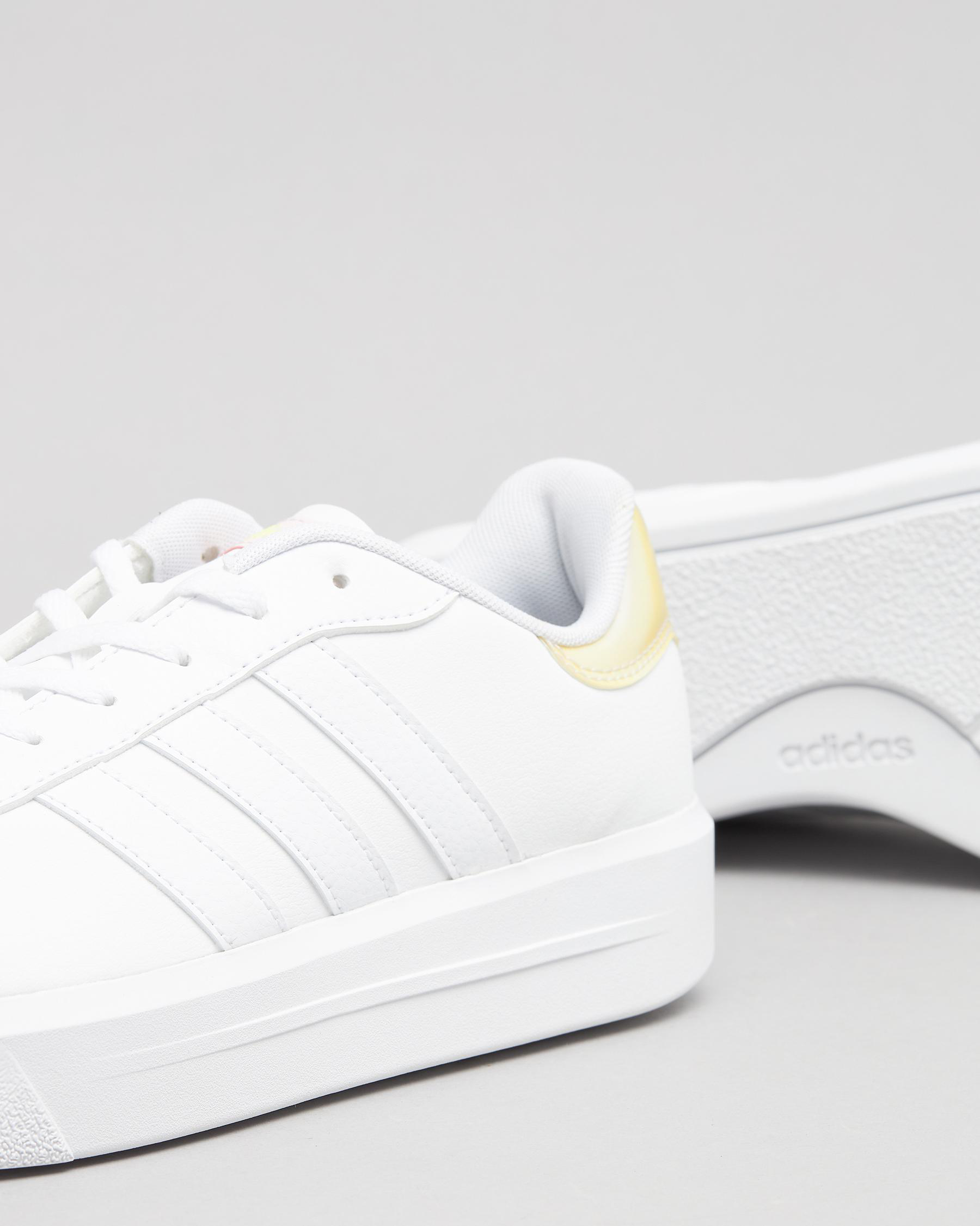Shop adidas Womens Court Platform Shoes In White/gold/black Fast
