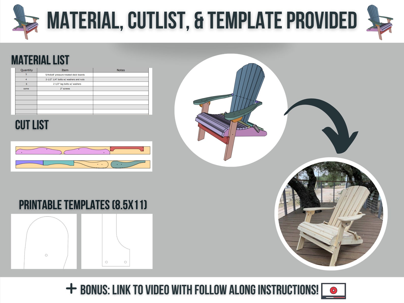Folding Adirondack Chair Plans Templates / Digital DIY Woodworking
