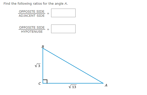 Solved Find the following ratios for the angle A OPPOSITE Chegg com