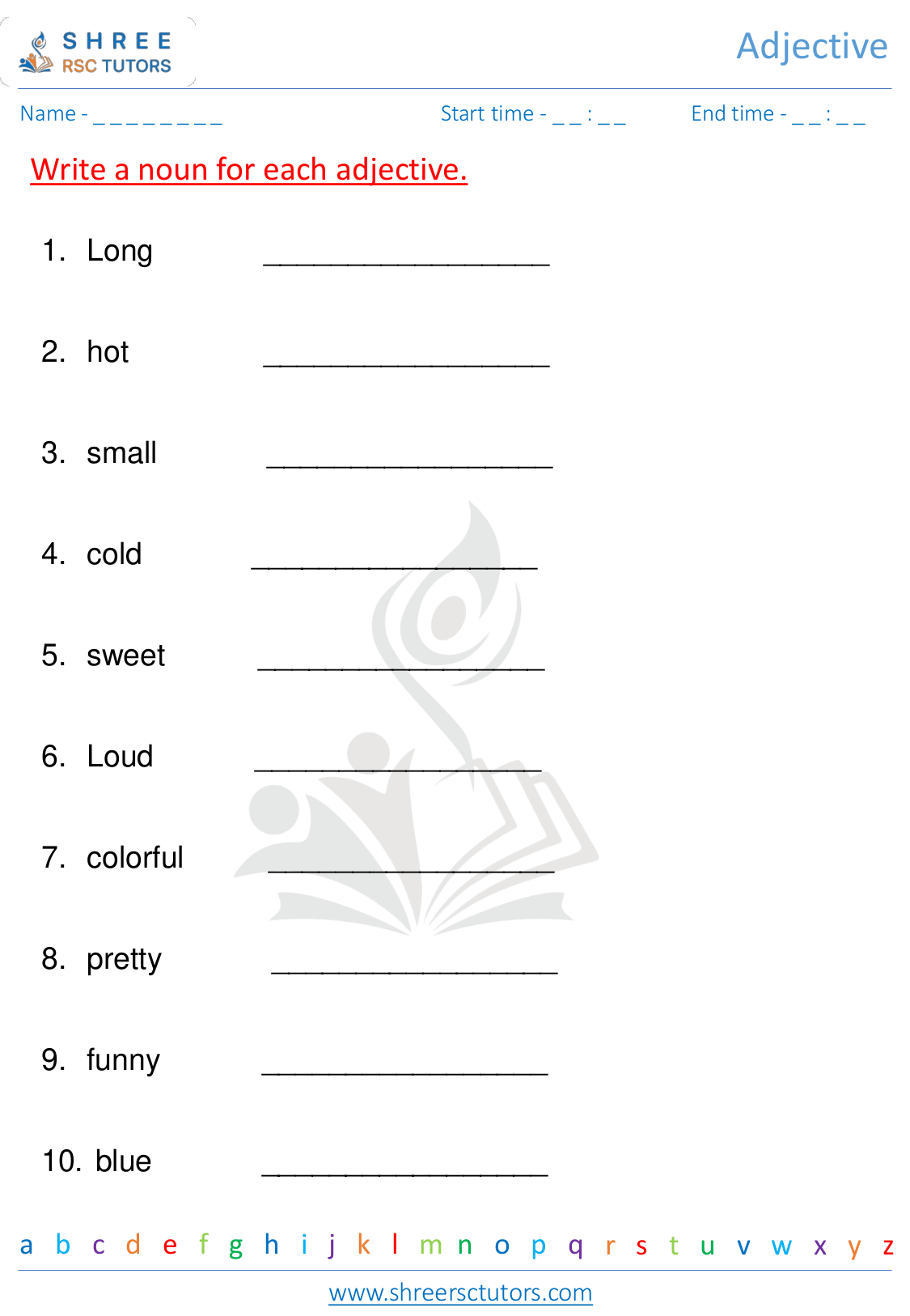 Adjective worksheets for Grade 1 English shree rsc tutors
