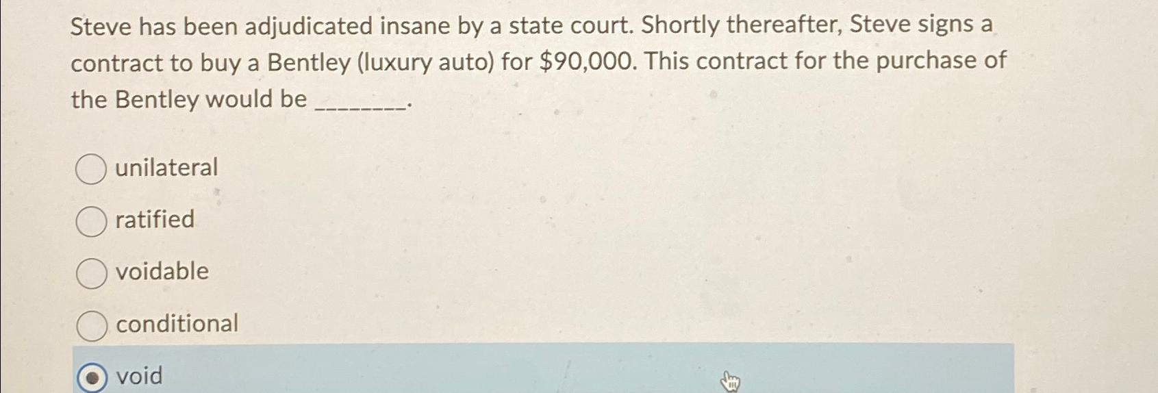 Solved Steve has been adjudicated insane by a state court Chegg com