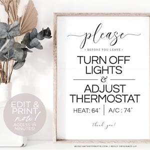 Turn off Lights Adjust Heat A/C Thermostat Fully Editable Printable