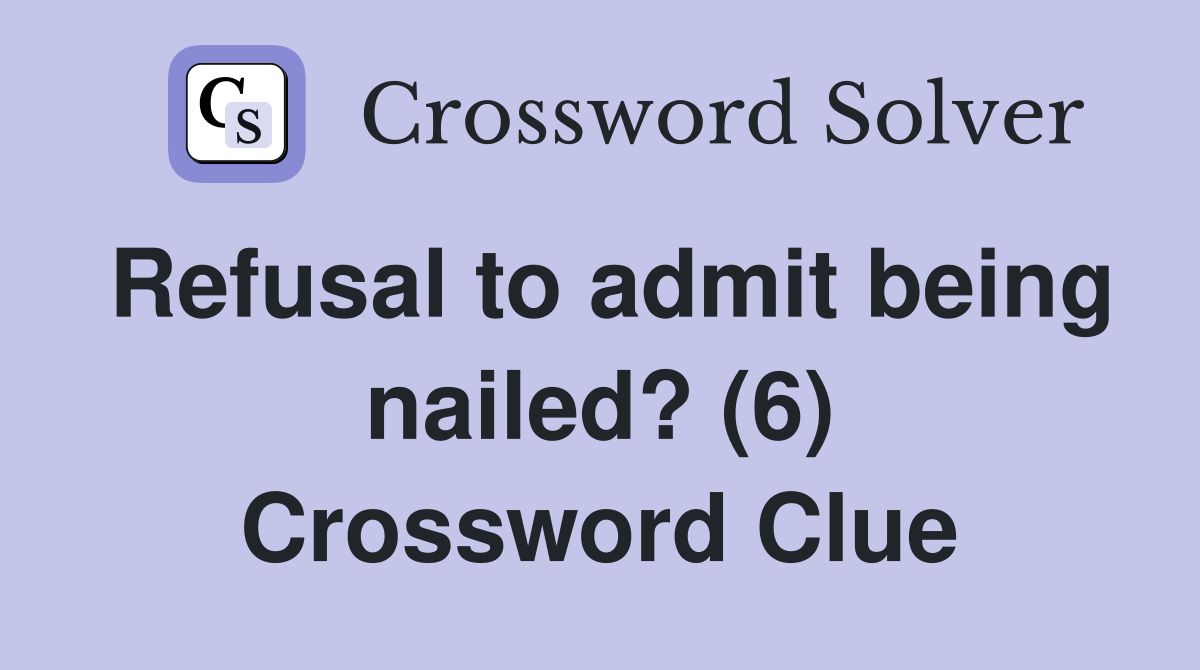 Refusal to admit being nailed? (6) Crossword Clue Answers Crossword