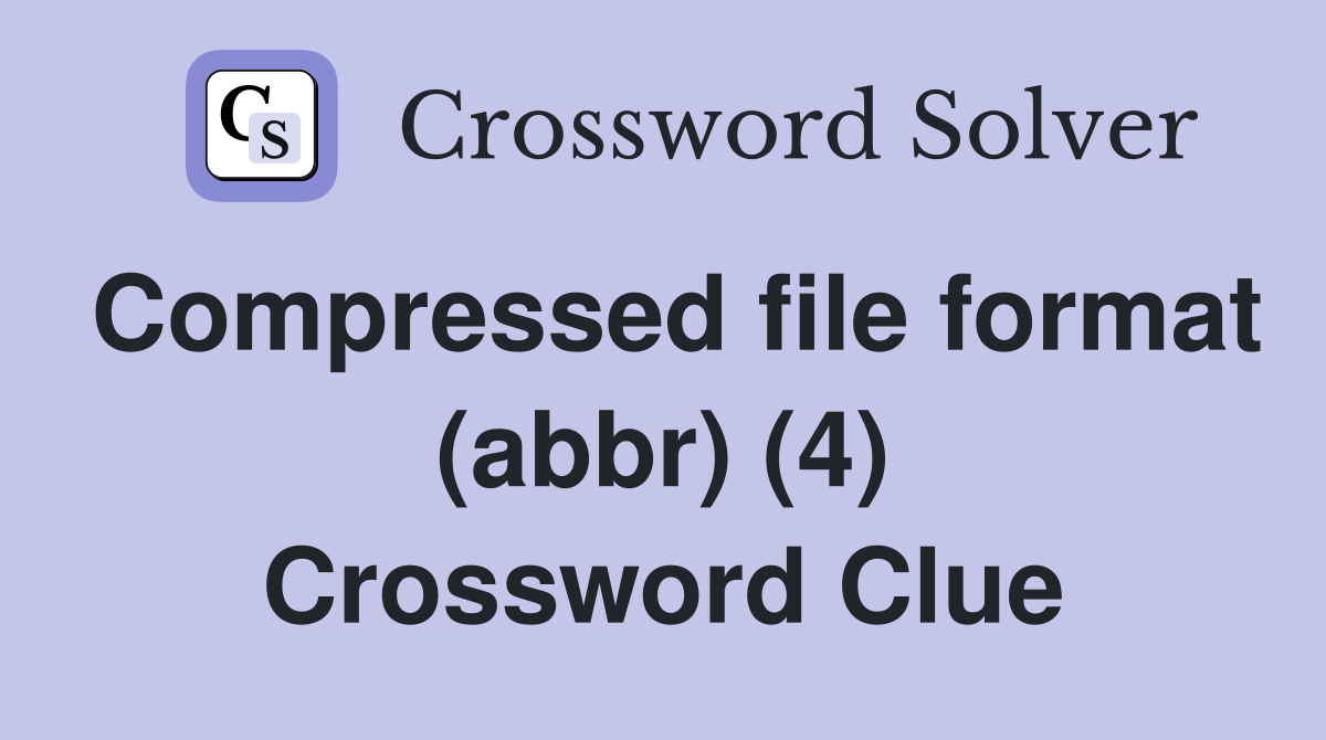 Compressed file format (abbr) (4) Crossword Clue Answers Crossword