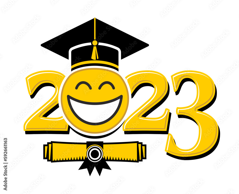 Class of 2023 Emoticon smile in graduation cap Template for greeting