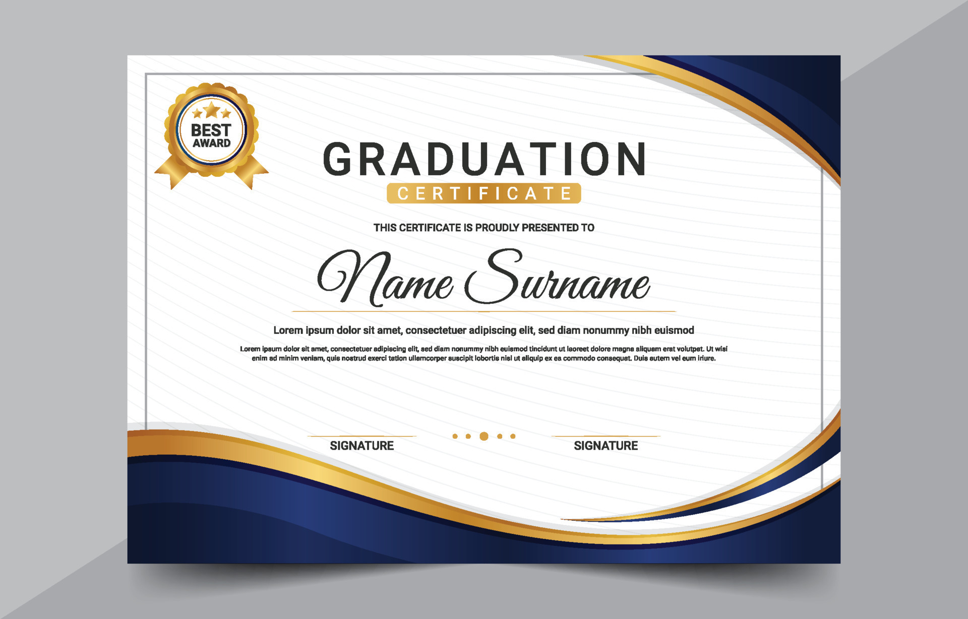Elegant Blue and Gold Graduation Certificate Template 10246252 Vector