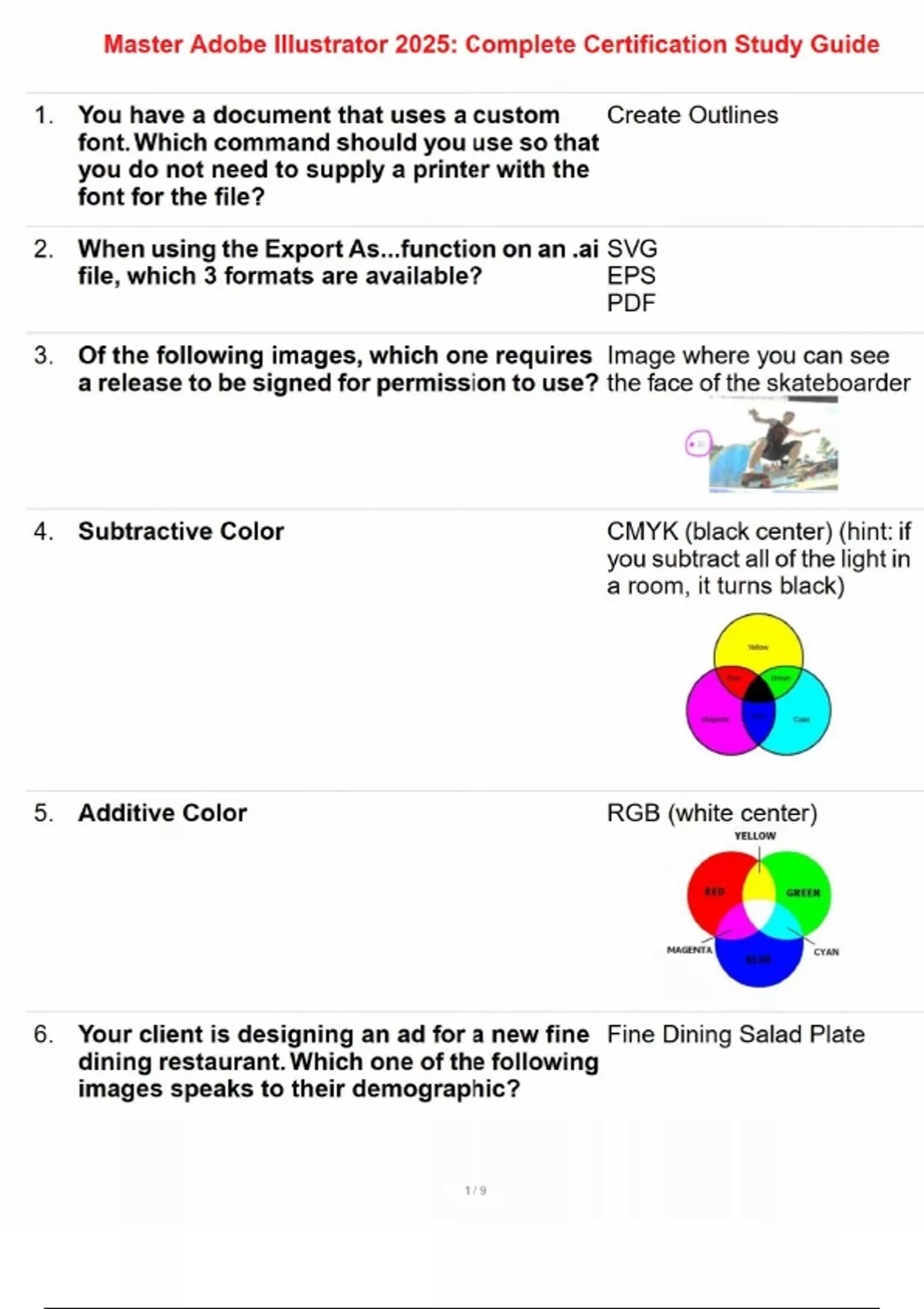 Illustrator Certification MULTIPLE CHOICE SECTION STUDY GUIDE TPT